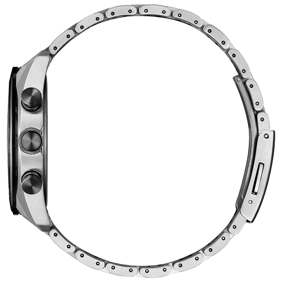 モノトーンでまとめたカラーリングで視認性を確保しました。ベゼルはGPS搭載モデルで人気のサファイアガラスリングを搭載した高級仕様で、サファイアベゼルの上にシルバー蒸着で仕上げた都市名表示が輝きます。