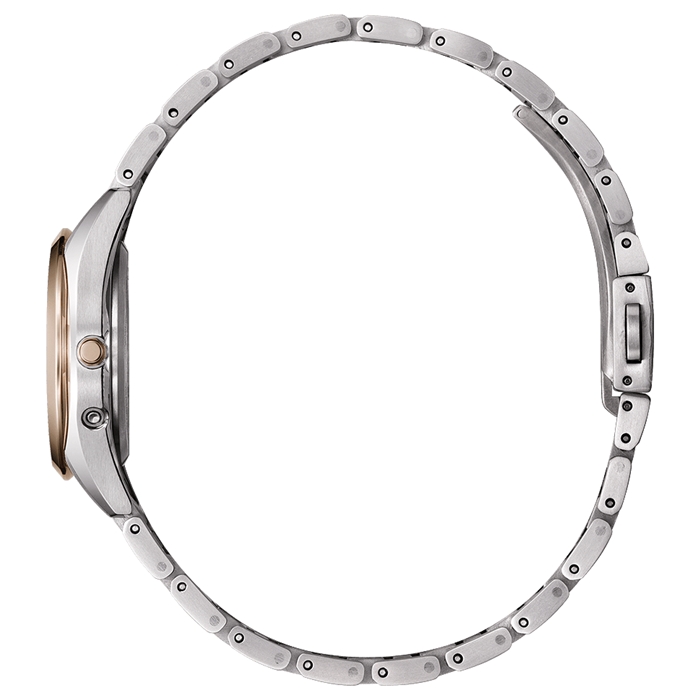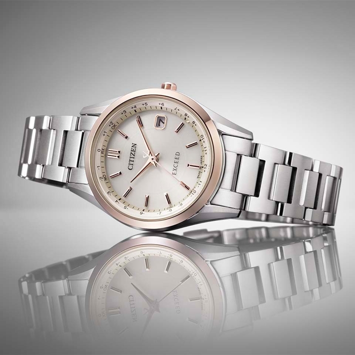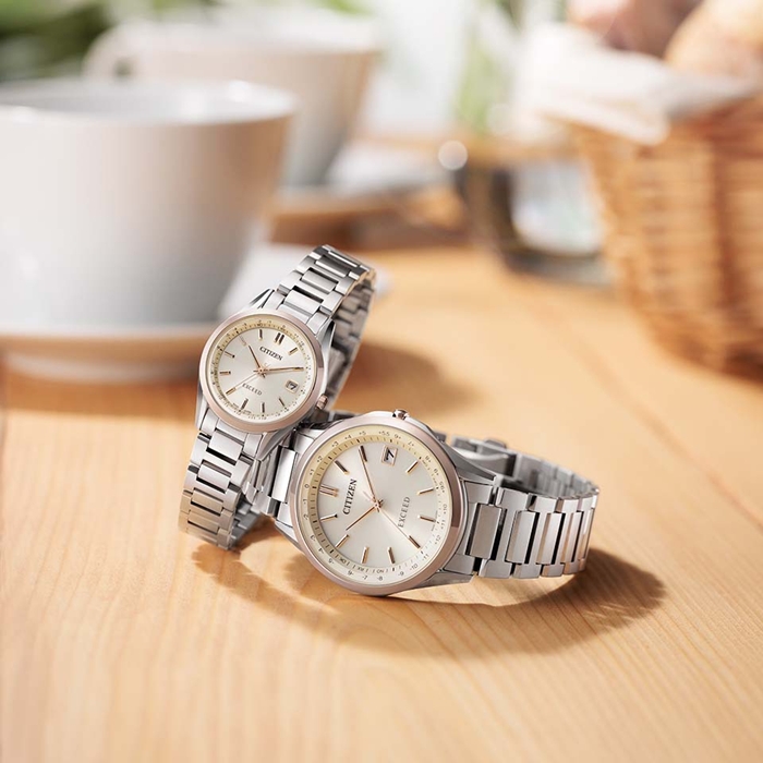 トレンドカラーを取り入れた、シンプルでありながらもメリハリのあるデザイン。ベージュ色の文字板がクラシカルで落ち着きのある印象を与えます。透明感のあるライトシルバー色のケースとバンド、サクラ色のベゼルを配したツートーンデザインが、ひときわエレガントな雰囲気を演出します。